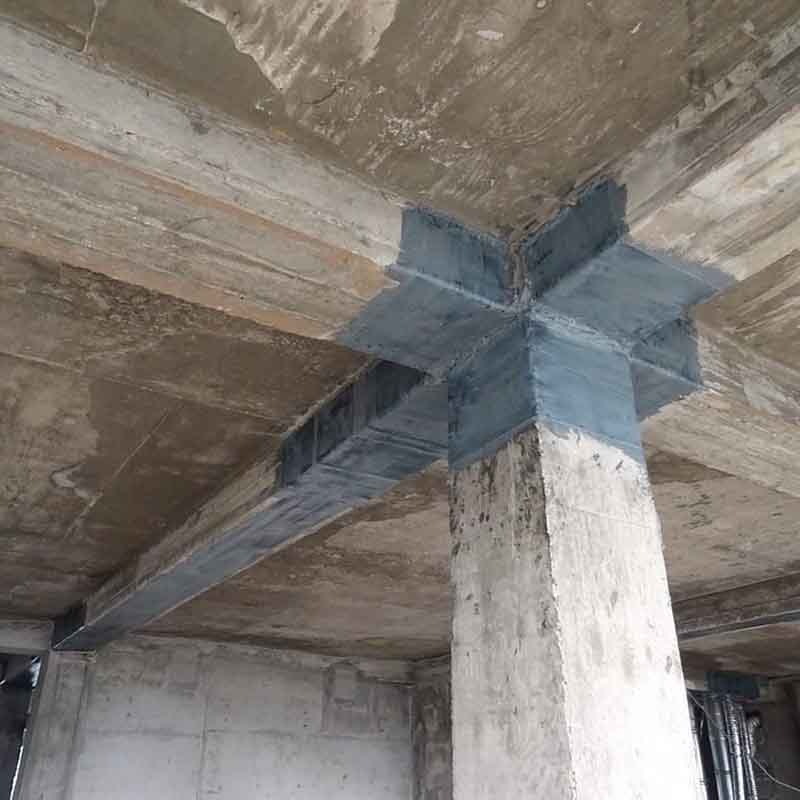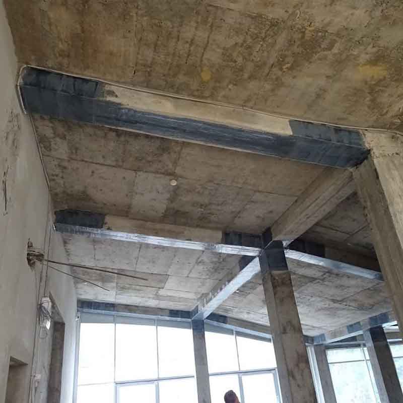 امروزه مقاوم سازی تیر با FRP در طول و عرض تیر بدلیل وزن سبک ، ضخامت اندک و مقاومت بالا همچنین استفاده ی آسان از آن بسیار مورد توجه قرار گرفته است و در پروژه های مختلف مقاوم سازی در سراسر دنیا استفاده می شود . اگر طراحی اولیه تیرها و دال های بتنی بویژه در دهانه های بلند دارای مشکل باشد می توان به کمک الیاف FRP مقاومت خمشی آنها را افزایش داد و تیرهای بتنی را تقویت کرد . عموما بدلیل پایین بودن نسبت ضخامت و ارتفاع المان به دهانه ، مقاومت خمشی آن کم می شود و در نتیجه در وسط دهانه ی تیر یا دال بتنی مقدار خیز بیشتر می شود .علت بوجود آمدن ترک های قائم در قسمت تحتانی تیر و دال های بتنی ، عدم وجود آرماتور خمشی به حد کافی در آنها می باشد ، یعنی هنگامی که تعداد آرماتورها از مقدار استاندارد و مهندسی آنها کمتر باشد ترک ها عمود بر آرماتور های طولی شکل میگیرند و در این ناحیه به بیشترین مقدار خود می رسند . الیاف FRP مدول الاستیسیته ی زیادی دارند در نتیجه می توان مقاومت و سختی عضو بتنی (دال ها یا تیرها) را افزایش بدهند که بدنیال آن خیز در عضو مورد نظر نیز کاهش پیدا میکند . الیاف CFRP در امتداد آرماتورهای فولادی به بیشترین مقدار از مقاومت کششی خود می رسند به همین جهت باید آنها را در همین امتداد اجرا کرد . بدلیل مقاومت برشی پایین در بتن از خاموت های عمود بر راستای تیر جهت تامین مقاومت برشی تیرها استفاده می شود با این وجود همچنان برخی از تیرهای بتنی مقاومت برشی لازم را ندارند لذا از الیاف FRP برای افزایش مقاومت برشی تیرهای بتنی استفاده می شود . اگر تیرها مقاومت برشی لازم را نداشته باشند ، ترک ها در محلی که برش حداکثر است و یا در محل تکیه گاه بصورت مایل با زاویه ی حدودا 45 درجه تشکیل می شوند . برای ترمیم و مقاوم سازی برشی تیرهای بتنی الیاف FRP را در جهت عمود بر ترک ها یا مایل می چسبانند ، هرچه زاویه بین نصب الیاف FRP اف آر پی با ترک ها کمتر باشد مقدار مقاومت برشی نیز افزایش می یابد . الیاف FRP را می توان به صورت U شکل اجرا کرد و یا میتوان به نحوی اجرا کرد که کاملا دور تا دور تیر را بپوشاند . از طریق سیستم مقاوم سازی با FRP می توان مقاومت خمشی و برشی اتصالات را افزایش داد تا موجب افزایش مقاومت نهایی در سازه شود . بدلیل نصب الیاف بصورت دورپیچ شکل پذیری در اتصالات بتنی افزایش می یابد . الیاف FRP بدلیل ضخامت کم ابعاد عضو مربوطه را افزایش نمی دهد و الزامات و زیبایی های معماری سازه را دستخوش تغییر نمی¬کند. استفاده از سیستم مقاوم سازی با FRP دارای برتری بیشتری نسبت به مقاوم سازی با استفاده از ورق های فولادی می باشد . از مزایای مقاوم سازی با الیاف FRP نسبت به ورقه های فولادی می توان به مقاوم الیاف FRP در برابر عوامل شیمیایی مثل اسیدها و بازها و مقاومت در برابر خوردگی اشاره کرد ، به همین دلیل استفاده از FRP در تقویت اعضای بتنی نیازی به اقدامات خاص جهت ایجاد سیستمی در برای حفاظت در برابر خوردگی و عوامل شیمیایی ندارد و ضما نصب و اجرای FRP و نگهداری در آنها ساده تر از سیستم مقاوم سازی با ورقه های فولادی است . سیستم مقاوم سازی با FRP سریع و آسان تر از سایر روش های قدیمی می باشد به همین دلیل ساختمان تقویت شده به سرعت قابل بهره برداری و سرویس دهی می باشد . الیاف پیشنهادی و مورد استفاده افزیر مقاوم سازی ناحیه چشمه اتصال و مقاوم سازی خمشی تیرهای بتنی نصب الیاف کربن تک جهته ™UCW در قسمت تحتانی تیر و ناحیه چشمه اتصال میباشد.
