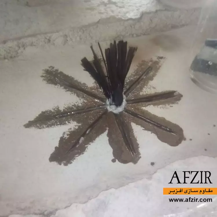 برای نصب اسپایک FRP باید در المان سوراخ ایجاد شود و بر روی سطح بتنی زیر لایه FRP نصب گردد.