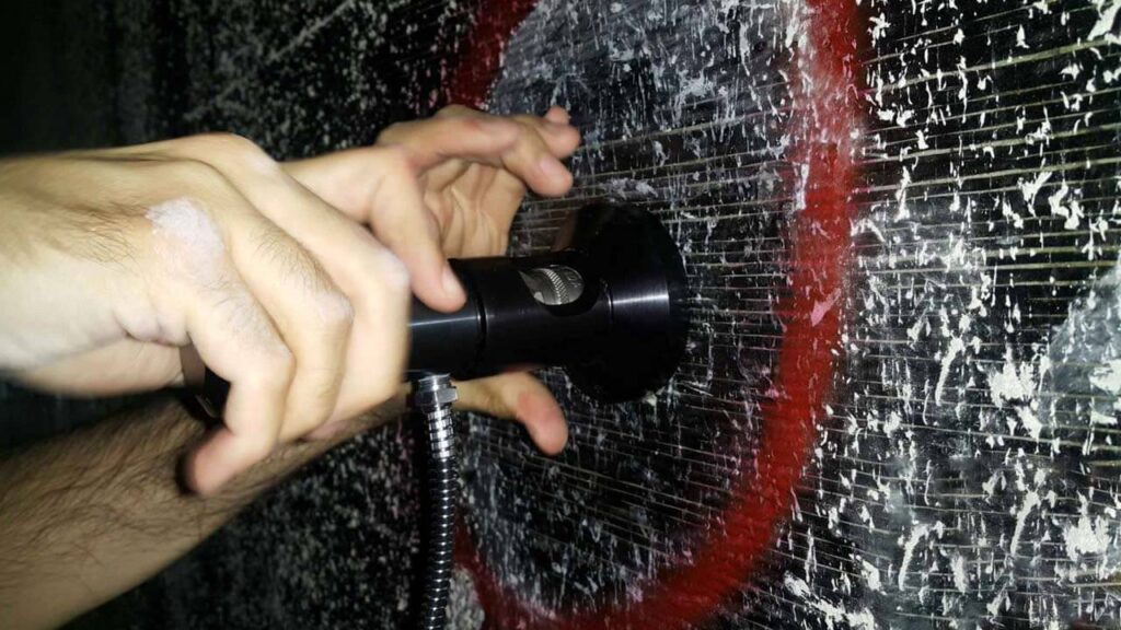 اولین مرحله در انجام تست پول آف، تمیز نمودن سطح زیر کار است. زیرا در صورتی که سطح زیرکار دارای آلودگی و گرد غبار باشد، عمل چسبیده شدن دالی به FRP به خوبی انجام نمیپذیرد و بنابراین در هنگام اعمال نیروی کششی به دالی، دالی از سطح جدا میشود.