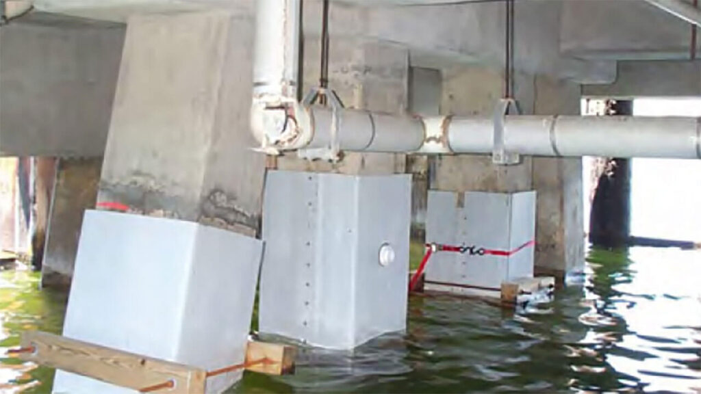 ستون های سازه های بتنی، فولادی و چوبی در محیط های دریایی بطور قابل ملاحظه‌ای در معرض آسیب‌های سازه‌ای و خوردگی هستند. سیستم ™LifeShield یک روش ترمیم درجای سازه ای و یک راهکار جهت محافظت از ستون‌هایی که دچار آسیب دیدگی و خوردگی شده‌اند می‌باشد. در این روش یک پوشش کامپوزیتی تقویت شده به وسیله الیاف شیشه (فایبر گلاسAR) دور محل آسیب دیده قرار می‌گیرد. این سیستم شامل گروت ترمیمی با مقاومت بالا جهت فراهم آوردن پوشش محافظ و مقاوم در برابر خوردگی است.